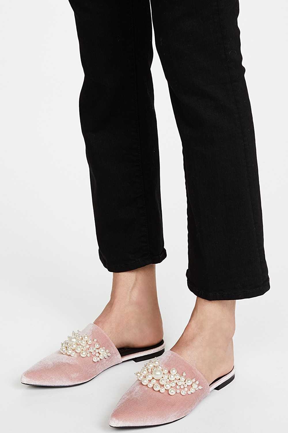 Модными в этом сезоне весны и лета остаются мюли с острым закрытым мысом. Здесь может присутствовать небольшой удобный каблучок, не менее трендовыми остаются мюли на низком ходу, декорированы камнями или вышивкой.