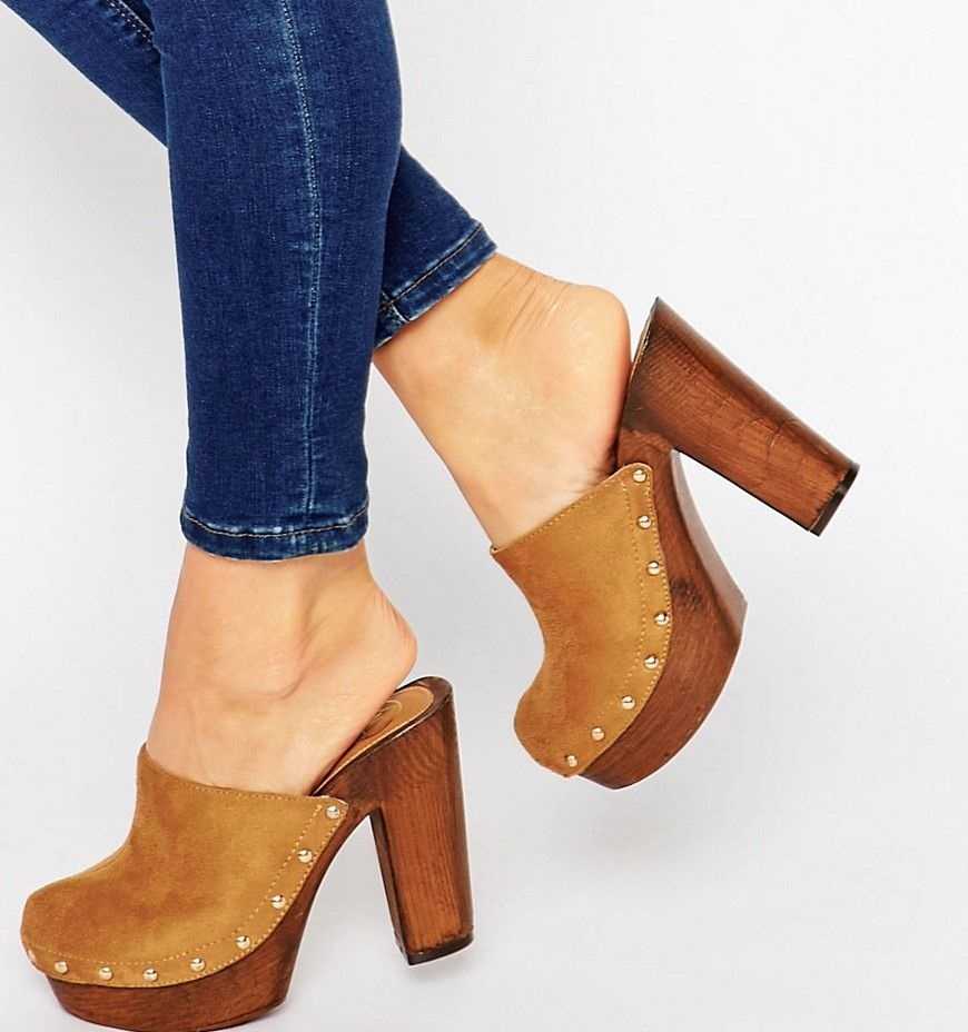 - Мюли. Имеют верхнюю часть в виде широкой полоски из кожи, выглядят довольно элегантно.