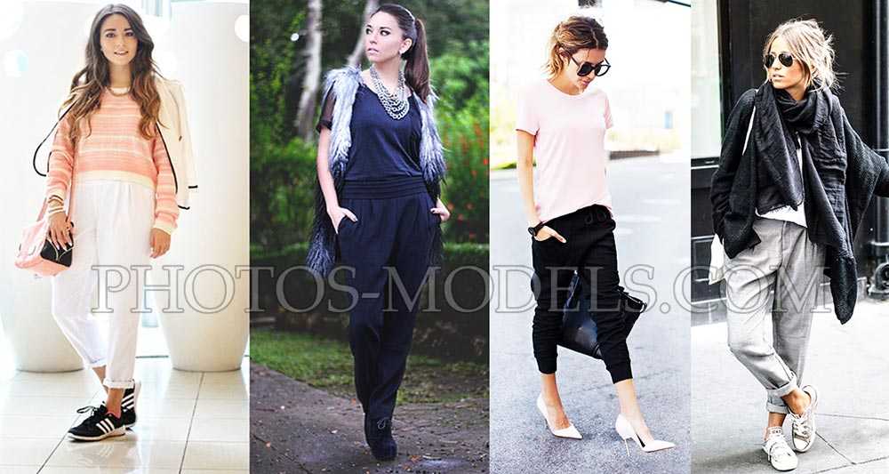 – мешковатые штаны, которые выглядят как вещь, которая на несколько размеров больше владельца. Несмотря на свою некую неопрятность данный фасон брюк помогает подчеркнуть женственность и хрупкость. В коллекциях современных дизайнеров отлично сочетаются строгие блузы с такими оверсайзами. Это неповторимый и загадочный образ, который будет по душе даже самой искушенной моднице.