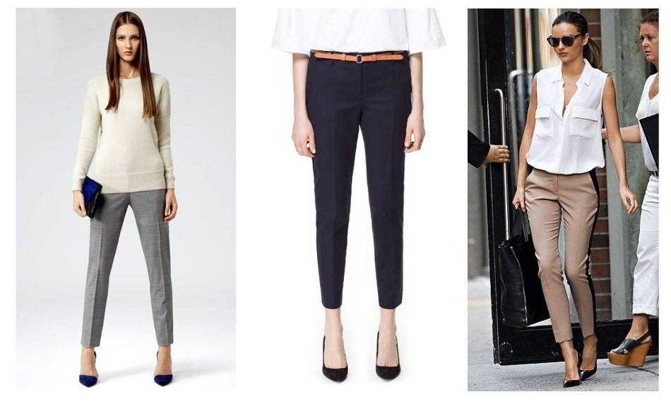 Офисный стиль. Такие брюки больше всего напоминают деловой лук. Еще бы, часто именно в офисах существует «дресс-код» из-за которого все девушки должны носить только классические брюки или юбку. Но не стоит расстраиваться, потому что, как вы видите, такие брюки входят в список модных. Главное подобрать такие брюки так, чтобы они подходили именно вам, и даже в офисе вы будете выглядеть неотразимо;