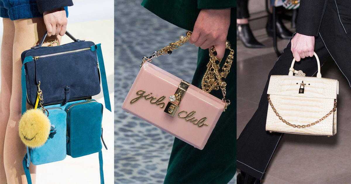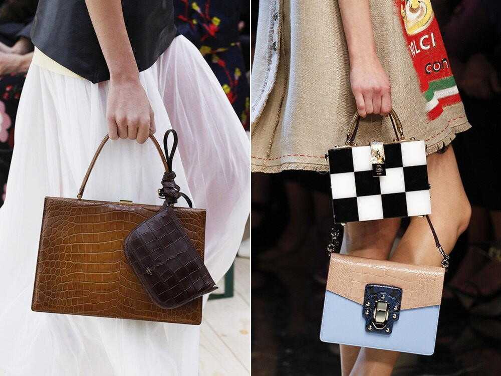 Модные сумки для женщин включают миниатюрные изделия с фотопринтами, жесткие пеналы на фермуаре, шкатулки с замочком. Подобные вещи присутствуют в коллекциях Balenciaga и D&G. Несмотря на нарядный декор и колоритное исполнение, сумки подобного рода больше подходят не для строгих вечерних луков, а для модных повседневных аутфитов.