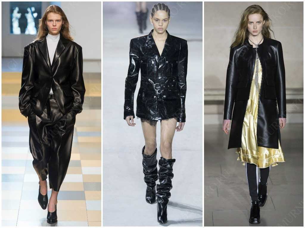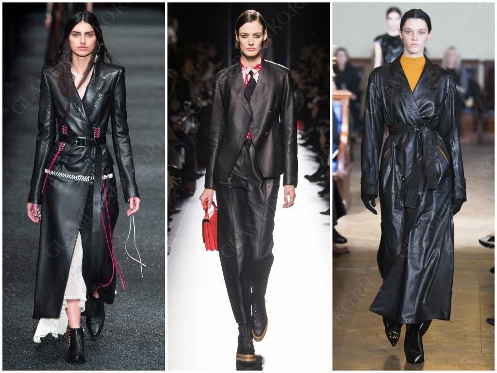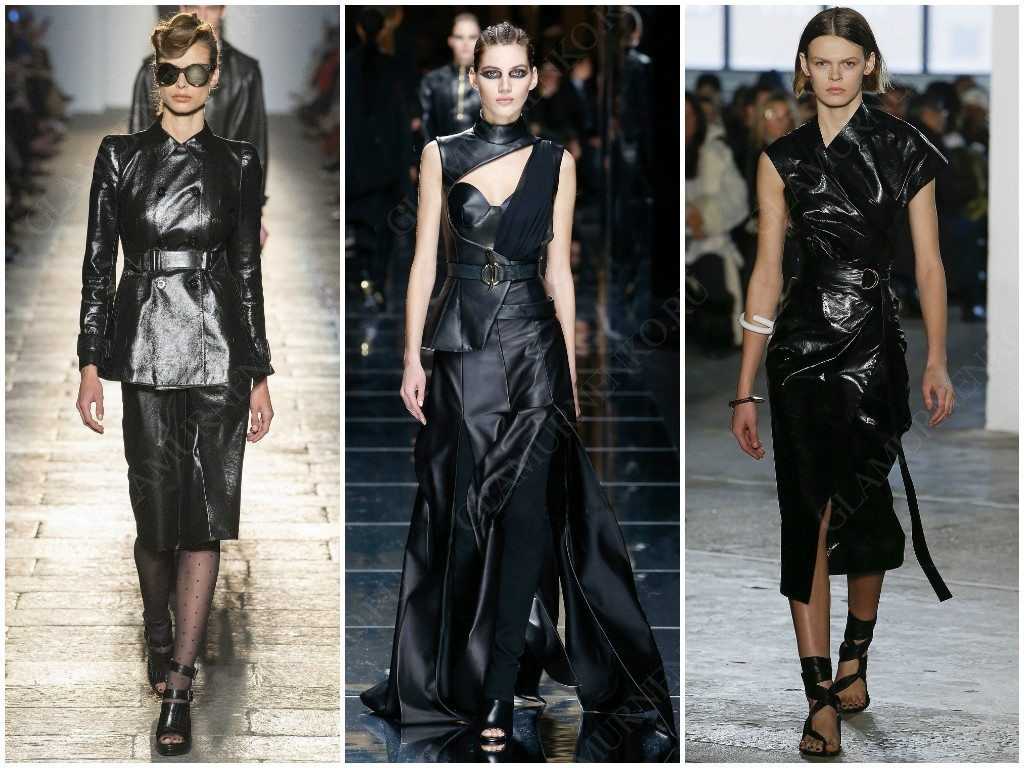 - Кожаные изделия признаны одним из ключевых трендов этого года. Из кожи шьют все, что возможно: платья, куртки, комбинезоны, юбки, брюки, топы и т. д.