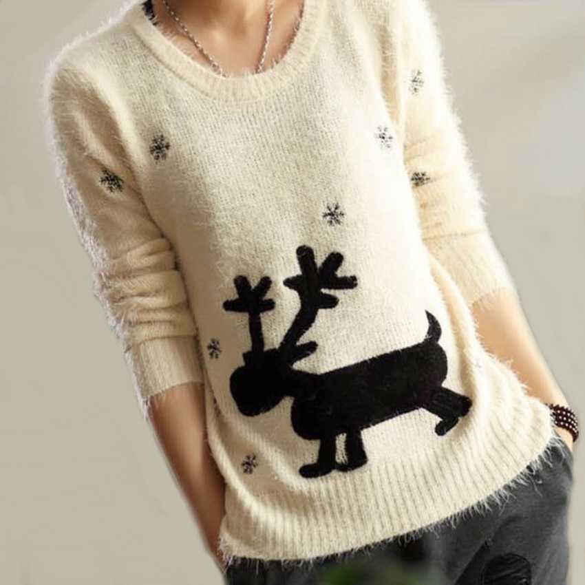 Не выходят из моды и очаровательные норвежские свитера с новогодней и рождественской тематикой – оленями, санта-клаусами, снежинками и прочей праздничной атрибутикой. В сезоне осень-зима 2017-2018 особую популярность приобретают модели, выполненные в стиле минимализм, при котором в качестве орнамента представлена голова северного благородного животного. При этом реалистичное или мультипликационное изображение может быть выполнено методом фотопечати, нанесения аппликации или вышивки.