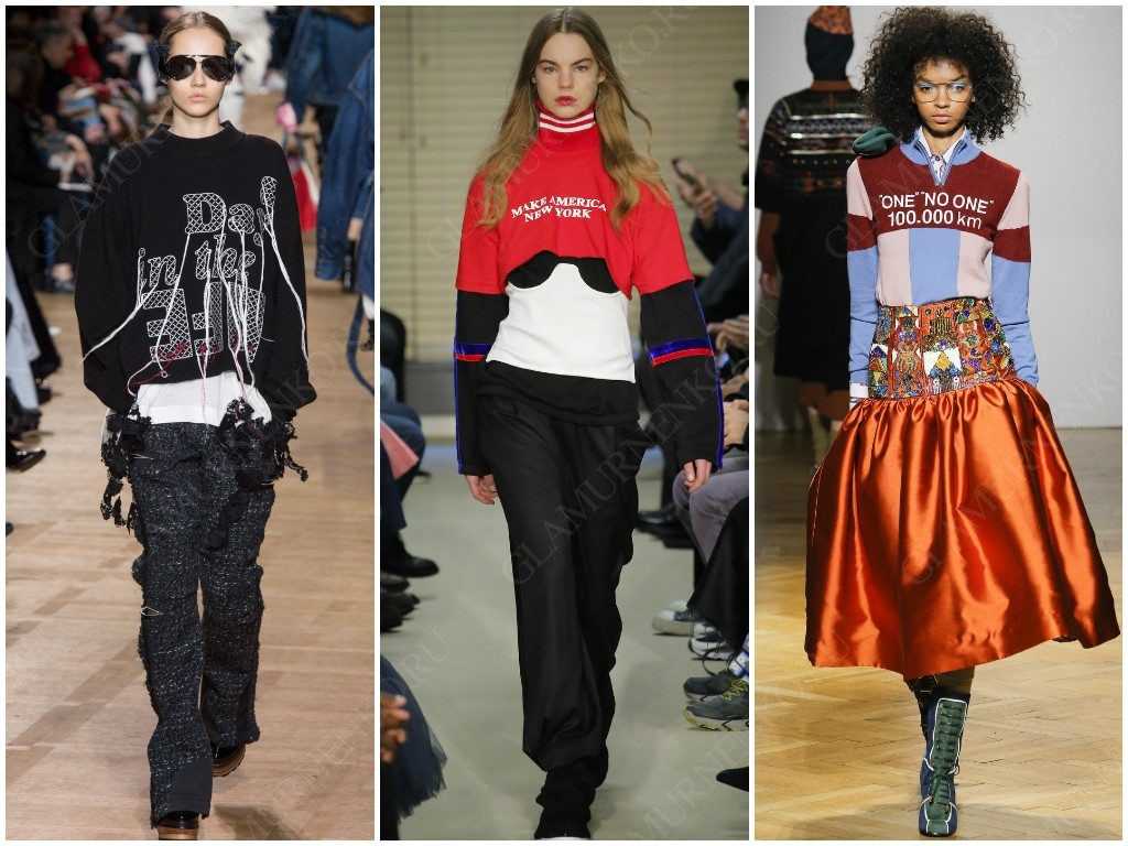 Длинные объемные свитера оверсайз с принтами осень-зима 2017-2018