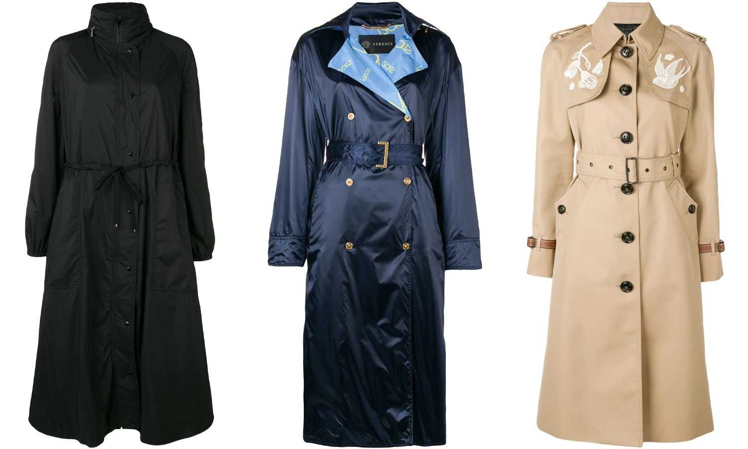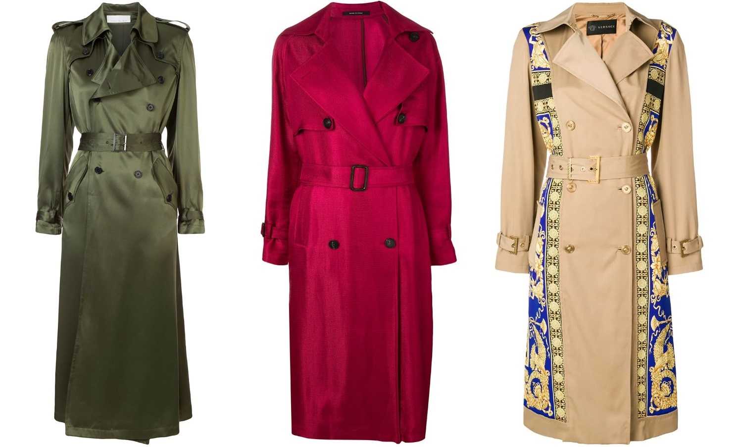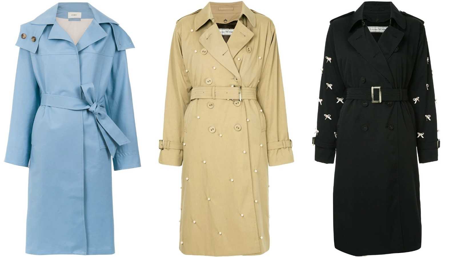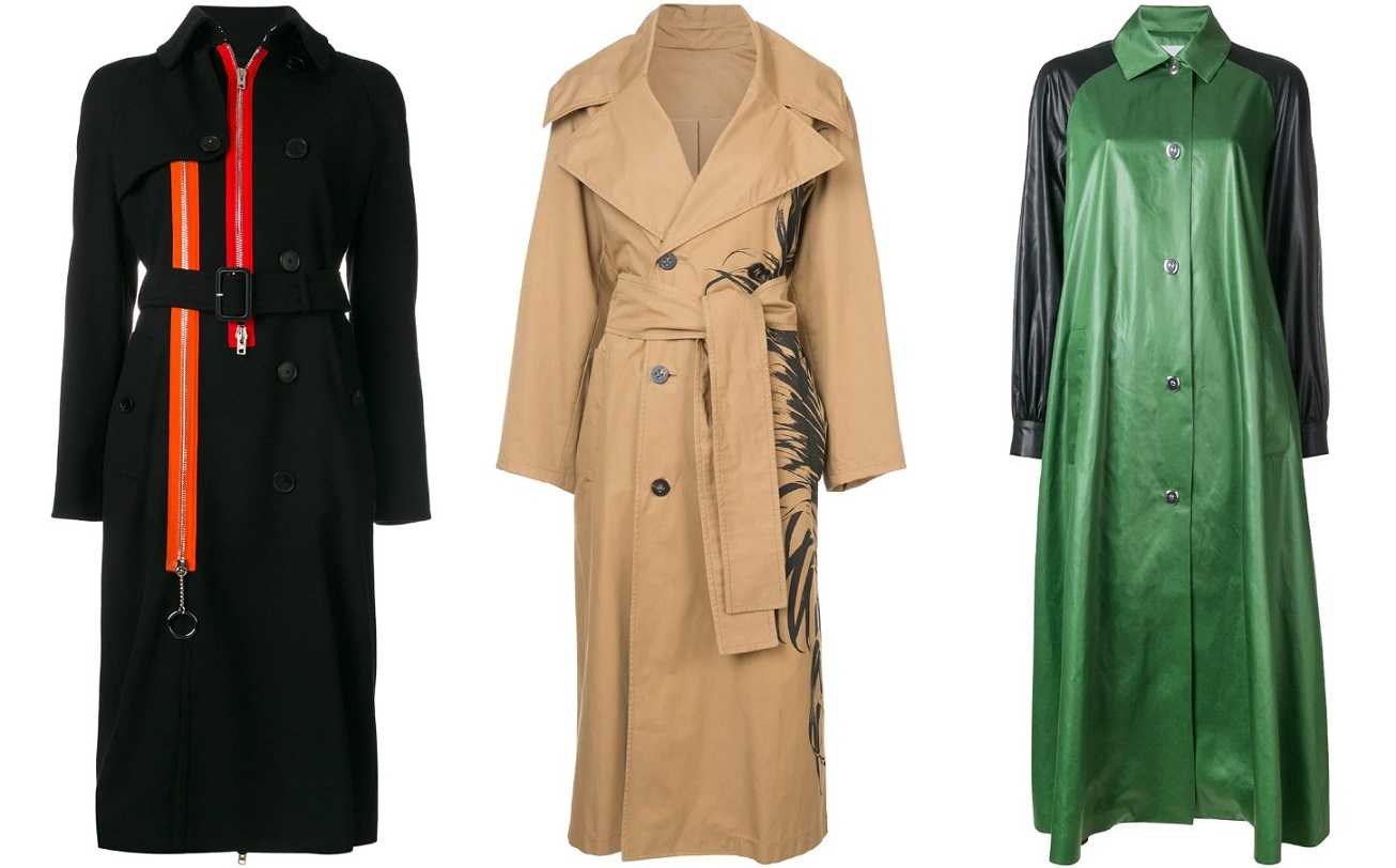 Дизайнеры предлагают в предстоящем сезоне большой ассортимент тренч-плащей в цвете хакки, светлых приглушенных бежевых оттенках, классических черном и белом тонах, а также ярких и сочных оттенках. Не менее популярными обещают стать в 2018-2019 году и модели из плотной джинсовой ткани.