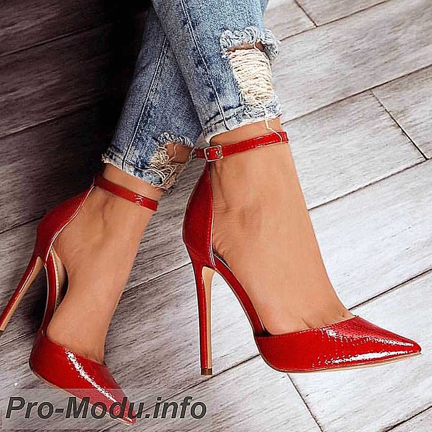 Главный акцент сезона – туфли красноватого цвета. Они издавна закончили создавать воспоминание дерзкой модницы, желающей выделиться из толпы. Весной 2018 обувь красноватого цвета, лучше лакированная, отлично смешивается с черным, белоснежным, бежевым, голубым цветом. Это безупречный выбор под джинсовые юбки и штаны.